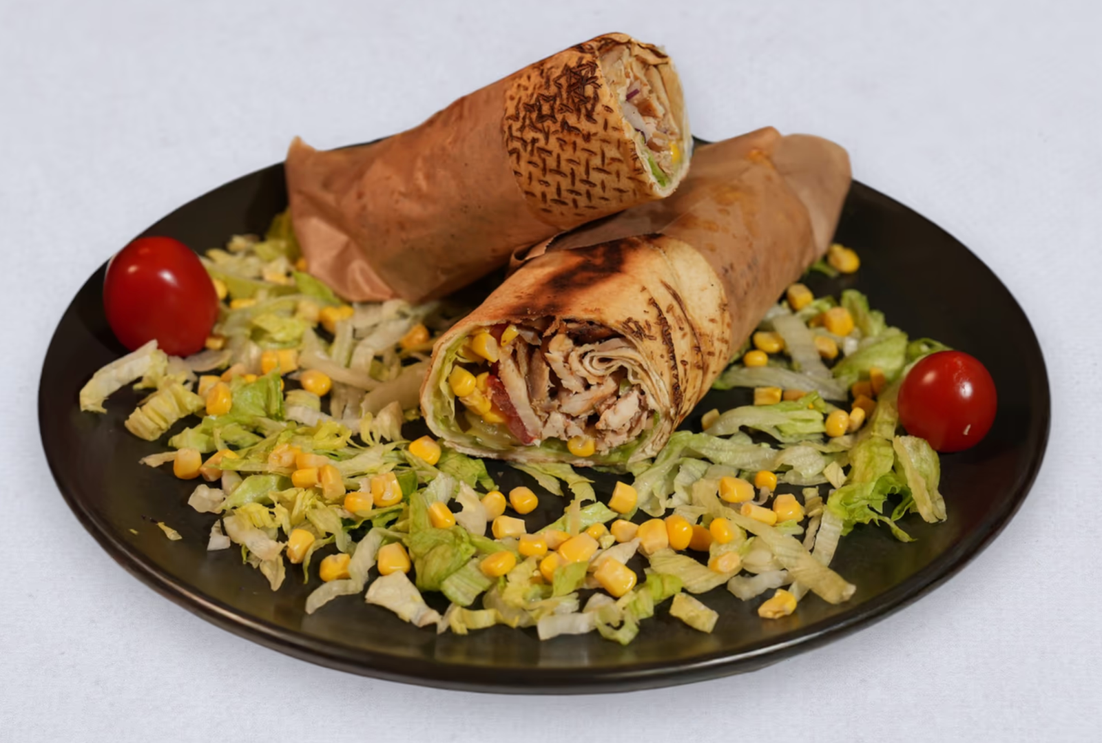 Mięso, sałata lodowa, pomidor, cebula, kukurydza, ogórek, pasta czosnkowa, sos, pita. pokaż więcej