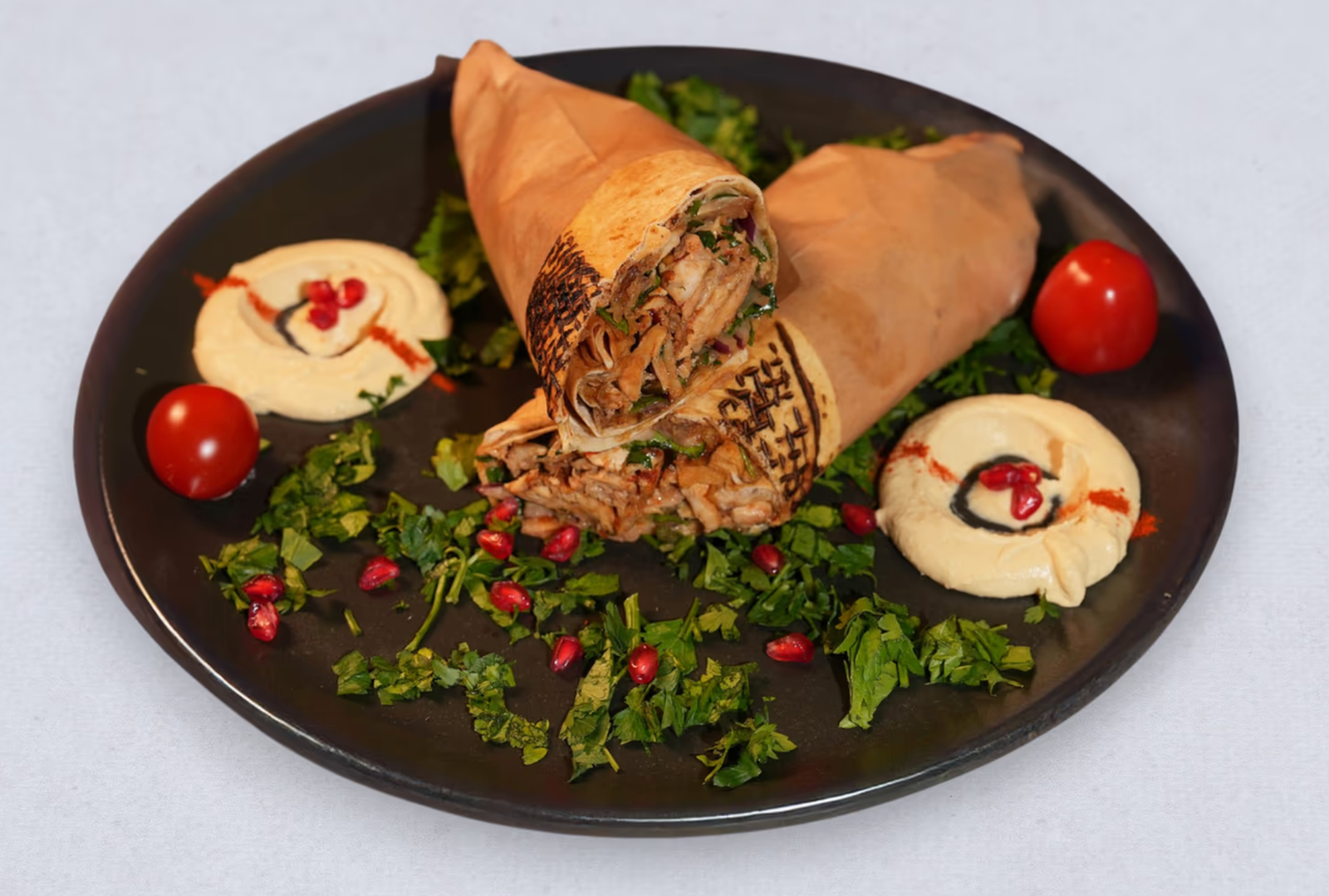 Mięso, hummus, pomidor, cebula, pietruszka, pikle, sos tahina. pokaż więcej